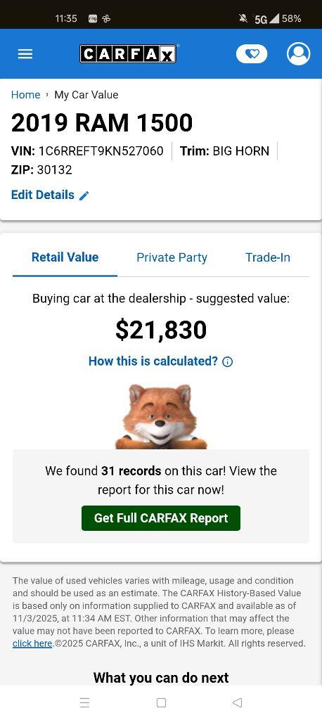 2019 RAM 1500 Big Horn Crew-cab HEMI $19,999 and multiple lenders available!! WARRANTY INCLUDED - 6 months/6,000 miles that can be extended and upgraded! Vin # 1C6RREFT9KN527060 126,744 miles 5.7L HEMI V8 Remote start 8.4'' touchscreen Apple CarPlay and Android Auto AM/FM/XM radio free for 3 months Rear backup camera Front and rear park sensors Heated front leather seats Heated leather steering wheel Power driver seat Power adjustable pedals Power folding side view mirrors Power sliding rear window Running boards Factory trailer brake controller Factory tow package One Stop Auto LLC 3180 Atlanta Hwy Dallas, GA 30132 M-F 9:00AM-6:30PM Sat 9:00AM-5:00PM Office: 770-702-7927 https://www.osautobrokers.com
